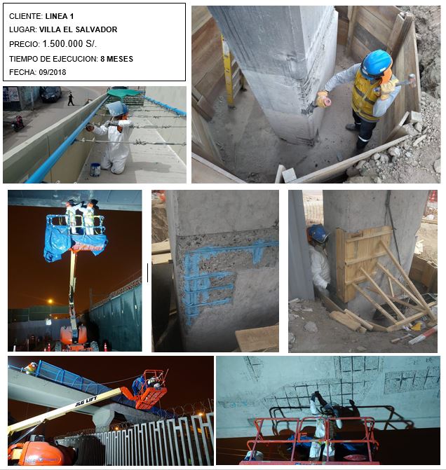 Se repararon 10 puentes peatonales y vehiculares: Reparación de cimentación, parapetos, placas, losa, etc. Se encontraron falencias estructurales, grietas, acero expuesto, concreto en mal estado. Se impermeabilizó los techos y se pintó los fondos de tablero del puente.